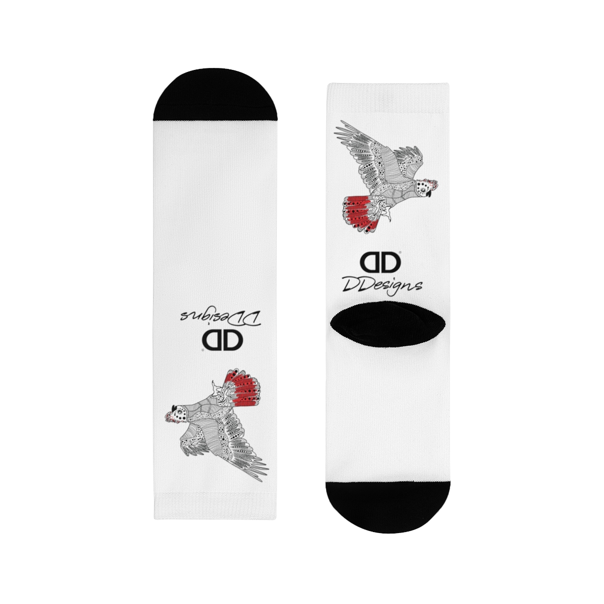 These sublimation crew socks take your designs to the next level. They are made of 70% polyester for easy customization and stretchiness, 25% cotton for extra softness, and the remaining 5% is elastane used at the welt for a cozy fit. Their polyester exterior and cotton interior are added for both superb comfort and printability. Sublimation socks are known for their vibrant sublimation colors and have a great amount of stretch as well as durable print quality.
