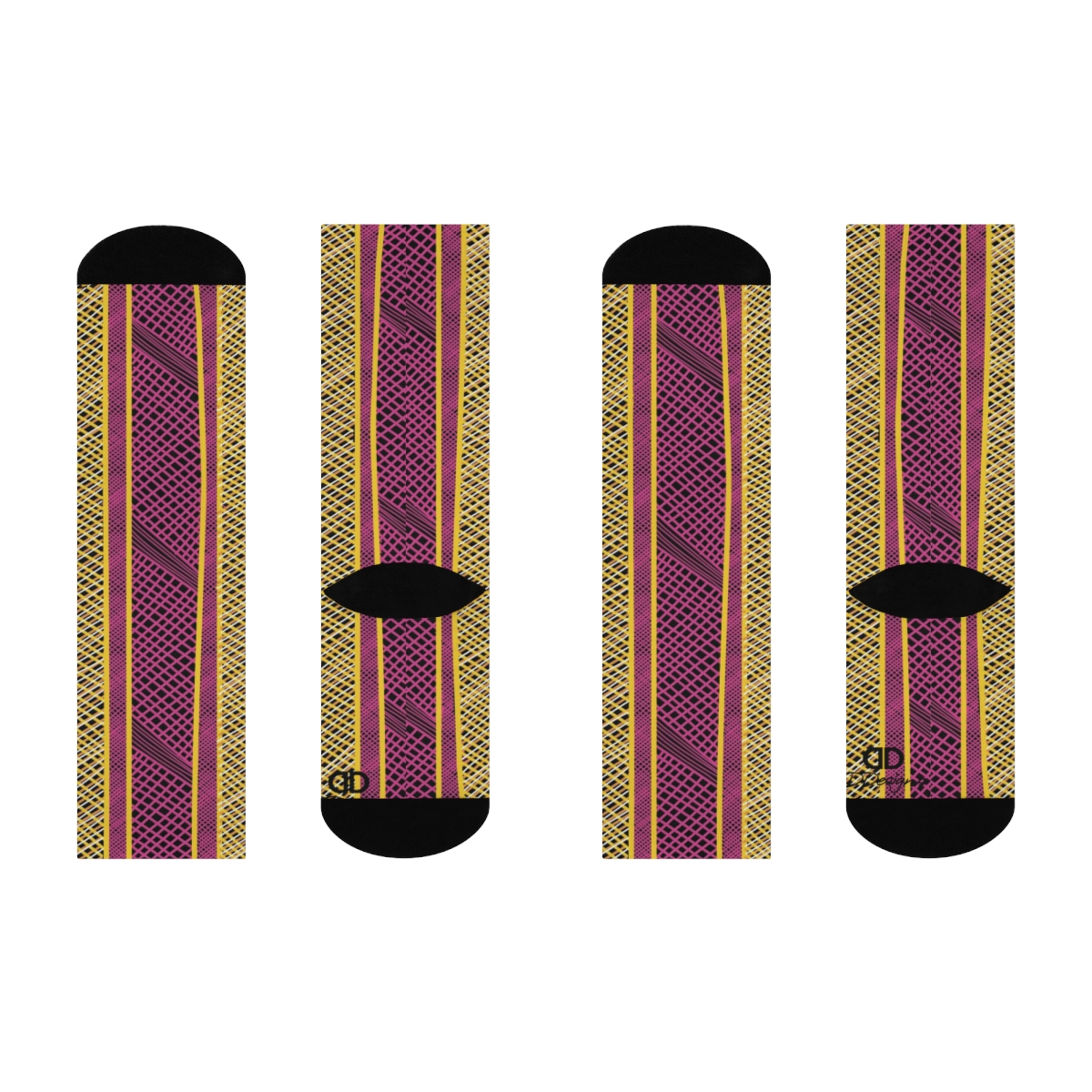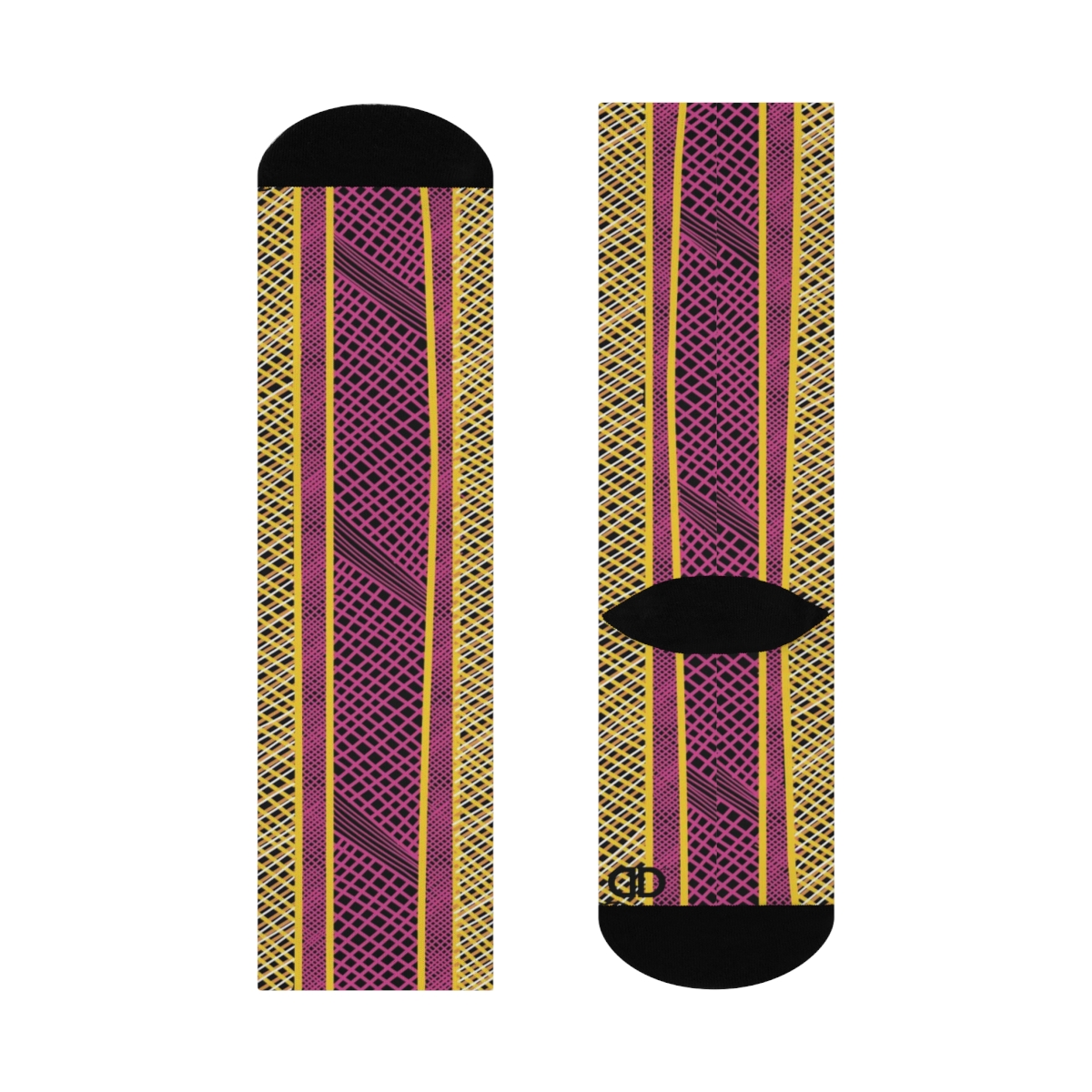 These cushioned DTG crew socks are a one-size style designed with both function and appearance in mind. With the fully cushioned heel-to-toe, these socks provide superior comfort, while the DTG print process allows for ultra-crisp, crease-free printing. Composed of 73% polyester, 18% nylon, 6% spandex, and 3% cotton, these socks are an elevated alternative to the typical sublimation sock and provide a clean, comfortable base for your all-over print designs.