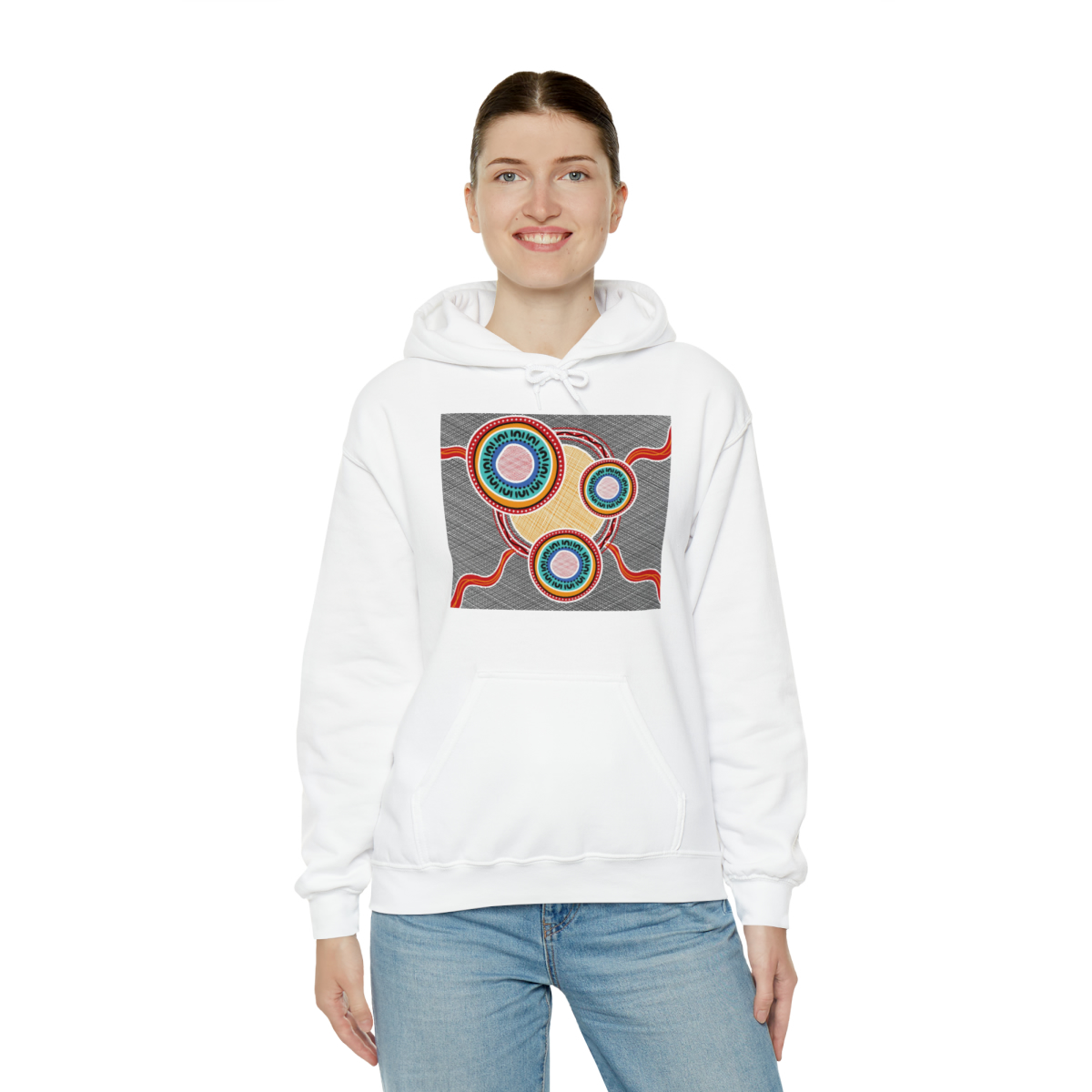 This unisex heavy blend hooded sweatshirt is relaxation itself. Made with a thick blend of cotton and polyester, it feels plush, soft and warm, a perfect choice for any cold day. In the front, the spacious kangaroo pocket adds daily practicality while the hood’s drawstring is the same color as the base sweater for extra style points.